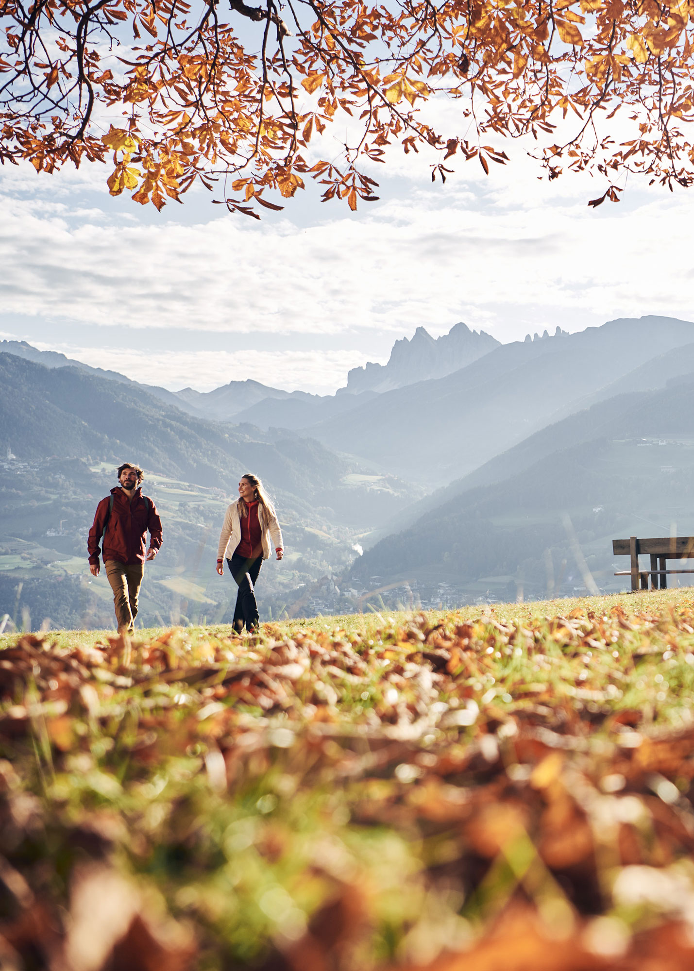 The Adolf-Munkel Trail in Villnöss is one of the most beautiful hiking trails in the region and runs directly beneath the impressive Geisler peaks. In Gröden, on the Plose, and in Villnöss, there are numerous other hikes- ranging from easy alpine pasture trails to challenging summit tours.